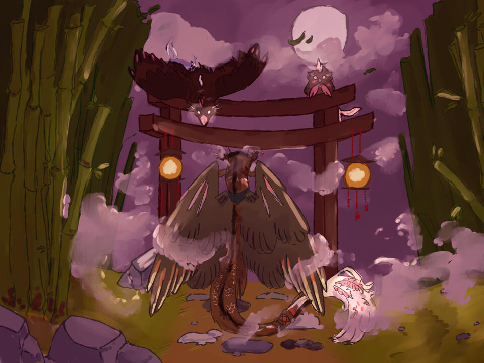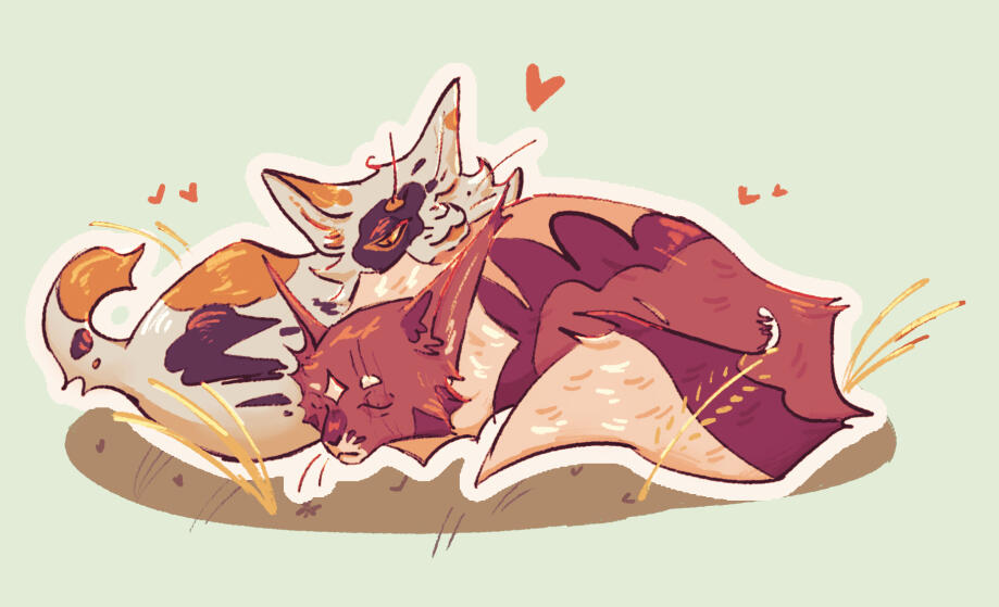 Redstar and Stormbelly, fullbdoy, lined, shading, two characters